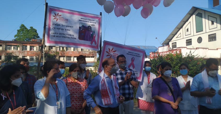 Assam Cancer Care Foundation observed Breast Cancer Awareness Month at Assam Medical College and Hospital (AMCH). On the occasion, balloons with an awareness message - ‘Early Detection is the Best Protection’ were released by Chief Guest Dr Hiranya Kumar Goswami - Principal, AMCH in the presence of prominent medical professionals, patients, and their attendants.