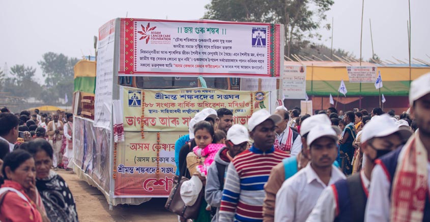 The annual Srimanta Sankaradeva Sangha festival is held every year in a different part of Assam. It's the largest socio-cultural-religious organisation in Northeast India. People from hundreds of kilometres away come to celebrate this festival and attend the seminars, meetings, conferences and other educational and cultural activities that are organised.