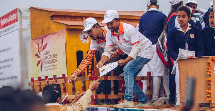 Awareness kiosks were placed at 20 different places at the conference area, distributing informative leaflets. In the four-day session, 150 NSS volunteers from Morigaon, Jagi Road and Mayong College participated in the awareness campaign and the cultural procession. A talk show on cancer witnessed encouraging participation from rural and urban youngsters.