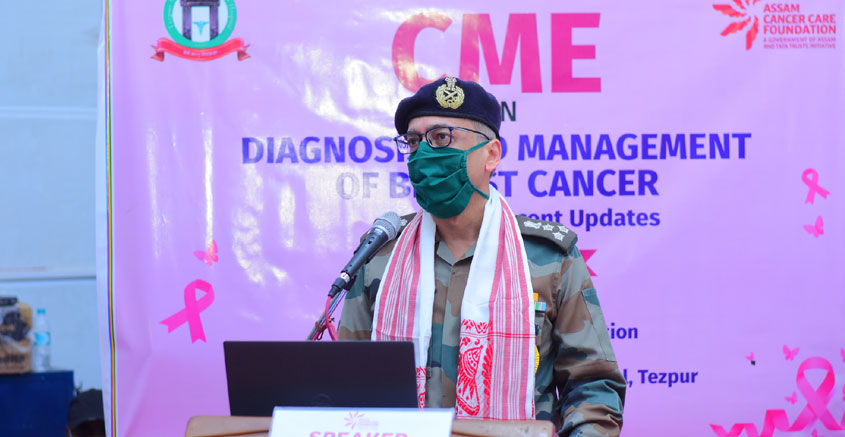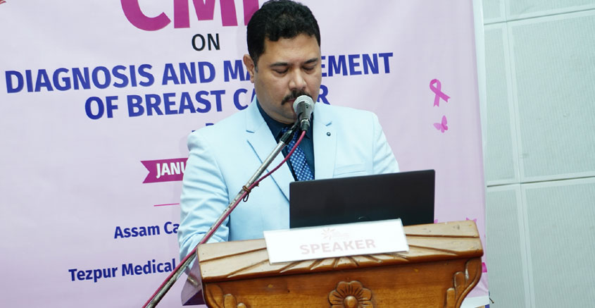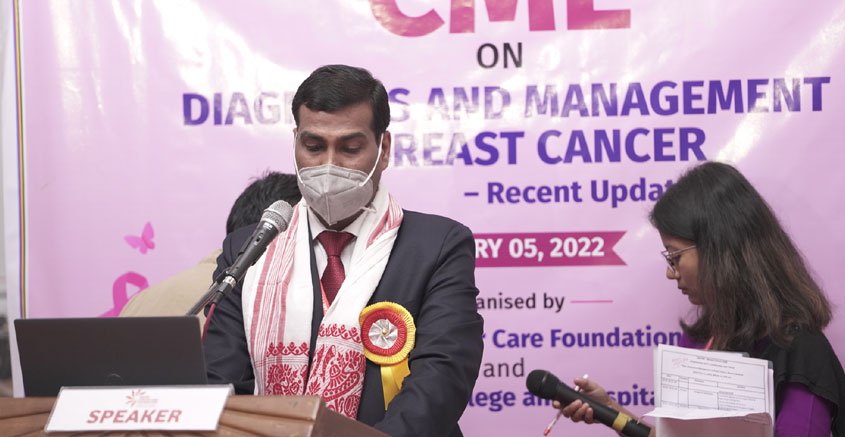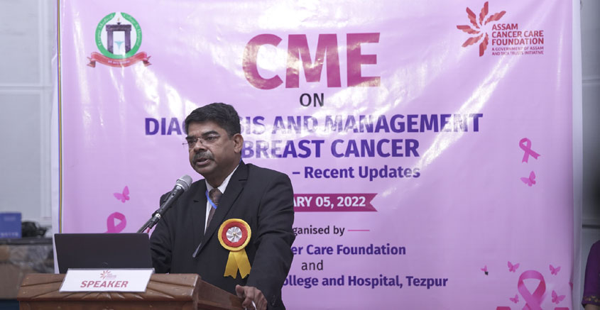 Assam Cancer Care Foundation and Tezpur Medical College and Hospital (TMCH), organised a CME on Diagnosis and Management of Breast Cancer – Recent Updates at the TMCH auditorium on January 05, 2022. Prof. (Dr) Karuna Hazarika, MD, DMRD Principal cum Chief Superintendent, TMCH, Dr Madhab Rajbongshi, Med Superintendent, TMCH, Dr Deepak Mishra, Director Lab Services, Tata Medical Centre, Kolkata, Dr (Col) Sajal Sen, Chief Operating Officer, ACCF, Dr. Venkata Pradeep Babu Koyyala, Sr. Consultant Medical Oncologist, ACCF and Dr. Sanjeev K Gupta, Sr Consultant Radiation Oncologist, ACCF along with faculty and post graduate students had participated in the daylong event. Various subjects like optimising management of cancer with precision radiotherapy; recent options in the management of metastatic breast cancer; molecular pathology: importance of IHC and molecular tests in breast cancer were discussed in the programme.