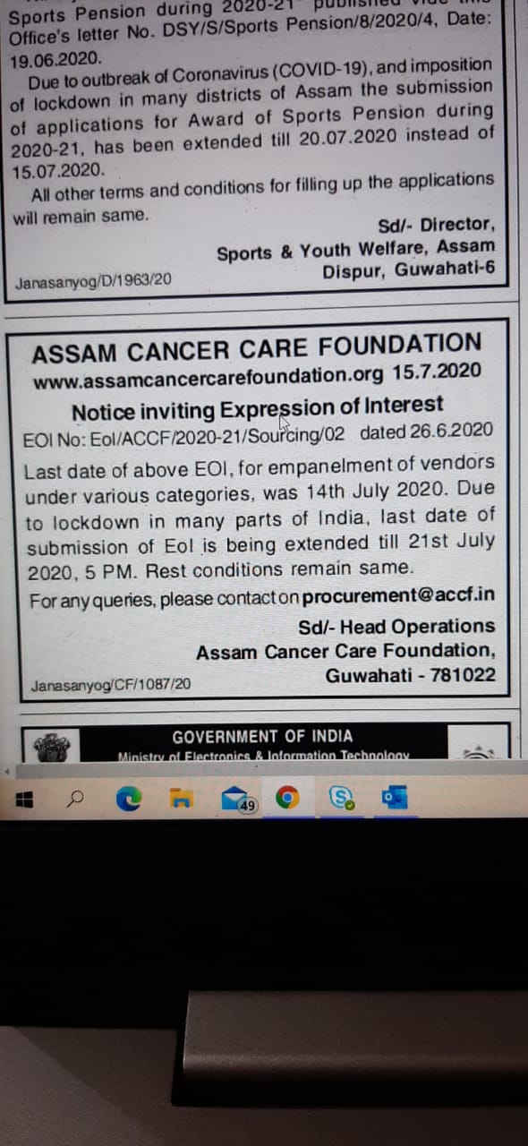 | ACCF/PANTRY CATERER/2022-23/50 | Request for proposal for selection of service provider for operating pantry and catering facility at, Assam Cancer Care Hospitals (ACCF) across Assam | Pantry and catering facility | 02-Aug-22 | Bid document | |