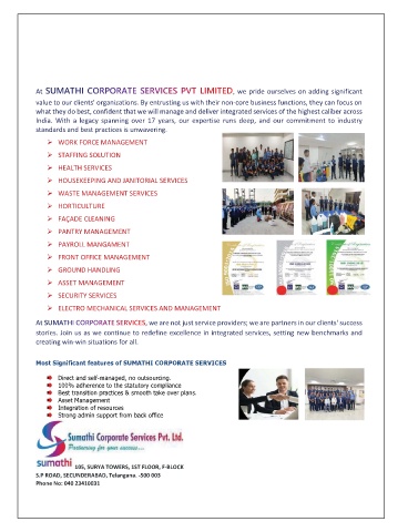 Most Significant features of SUMATHI CORPORATE SERVICES