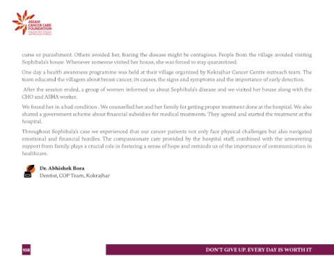 Throughout Sophibala’s case we experienced that our cancer patients not only face physical challenges but also navigated