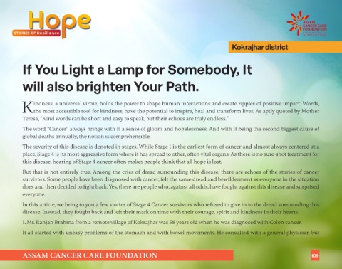 1. Mr. Ranjan Brahma from a remote village of Kokrajhar was 58 years old when he was diagnosed with Colon cancer.