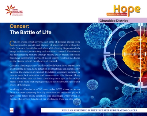 40 REGULAR SCREENING IS THE FIRST STEP IN DEFEATING CANCER