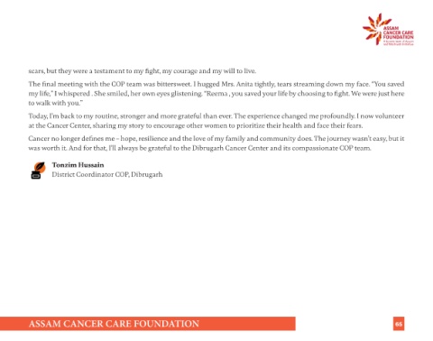 was worth it. And for that, I’ll always be grateful to the Dibrugarh Cancer Center and its compassionate COP team.