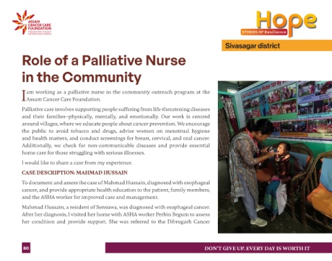 her condition and provide support. She was referred to the Dibrugarh Cancer