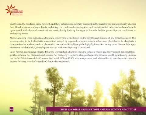 gently explained her diagnosis and assured her that early treatment, along with quitting tobacco, would significantly improve