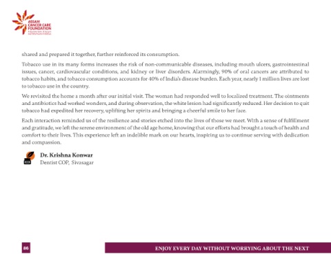 tobacco habits, and tobacco consumption accounts for 40% of India’s disease burden. Each year, nearly 1 million lives are lost