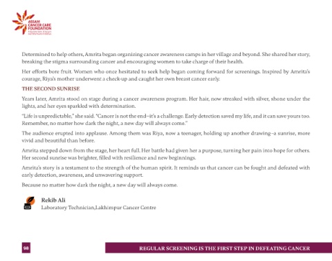 Determined to help others, Amrita began organizing cancer awareness camps in her village and beyond. She shared her story,