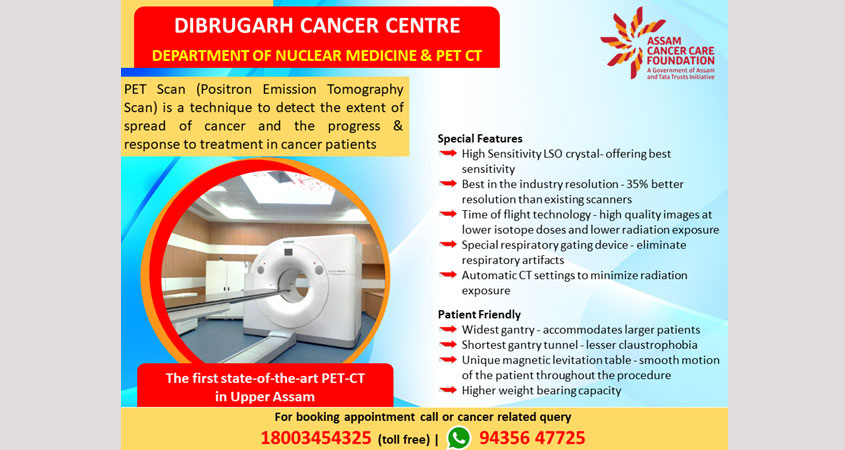 Dr Nitin Gangrade – Consultant, Nuclear Medicine at Dibrugarh Cancer Center has stated that the PET CT is latest and state-of-the-art machine available now in Dibrugarh and can perform all those tests which are regularly carried out in big cities.